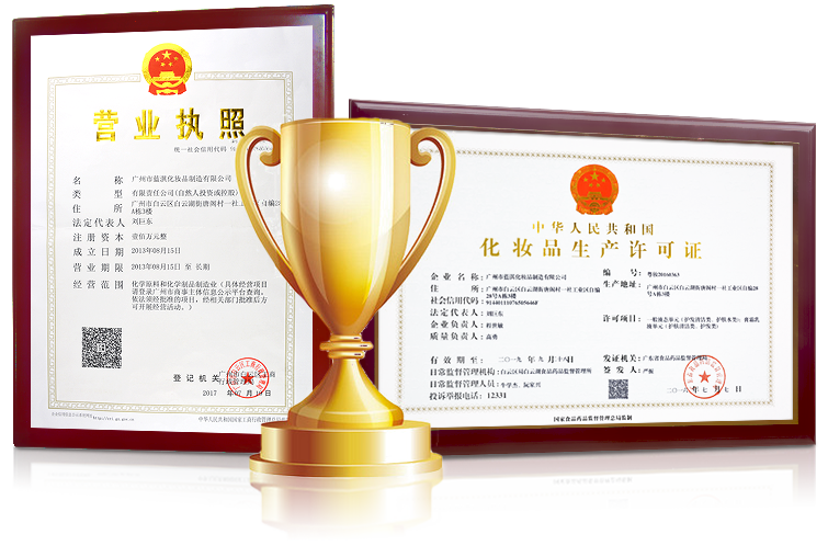 • 具有國家權威認證的化妝品生產資質